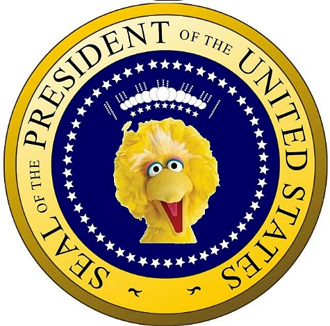 Obama places Big Bird on the Presidential Seal.
