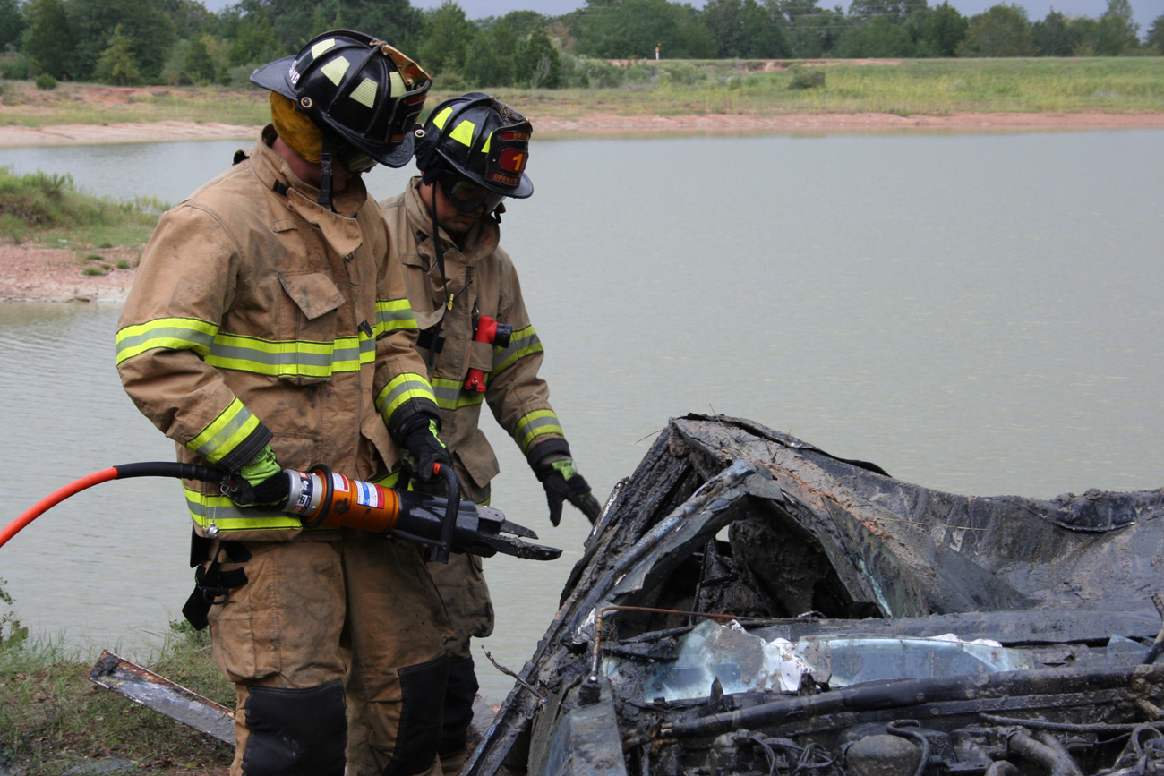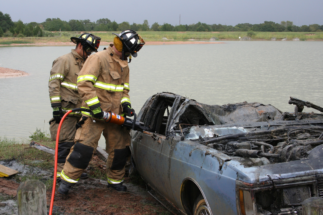 Bryan Texas firemen deciding where to cut