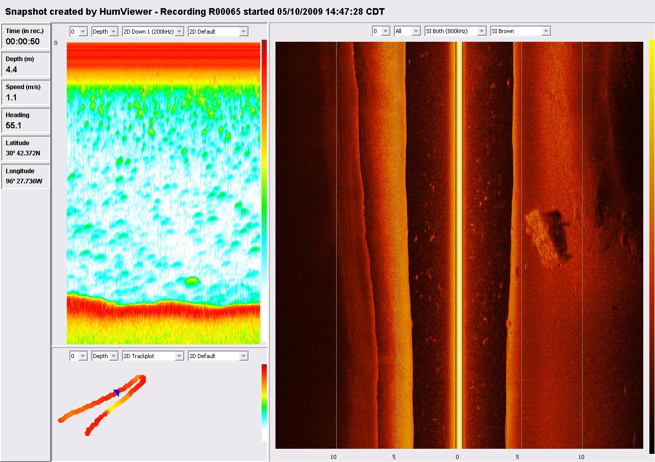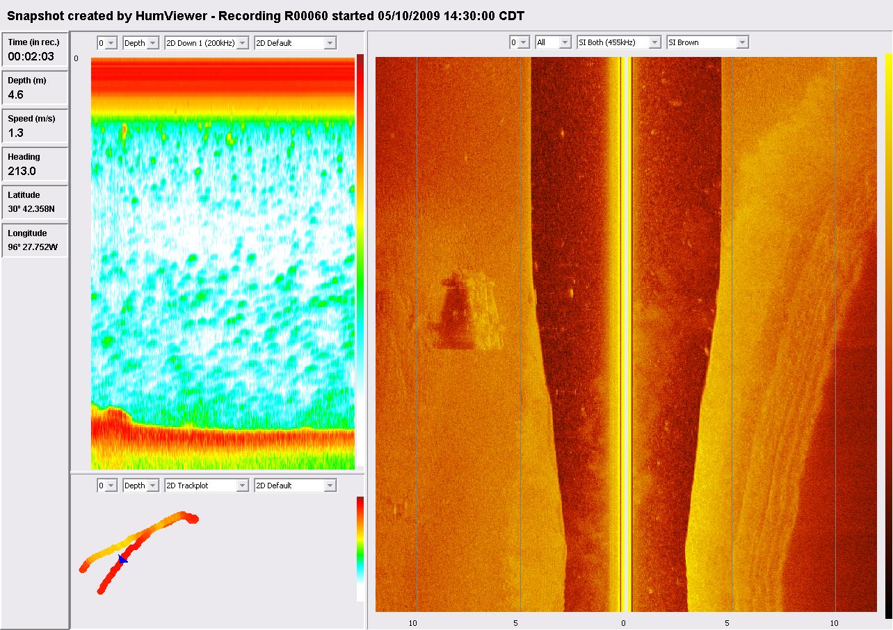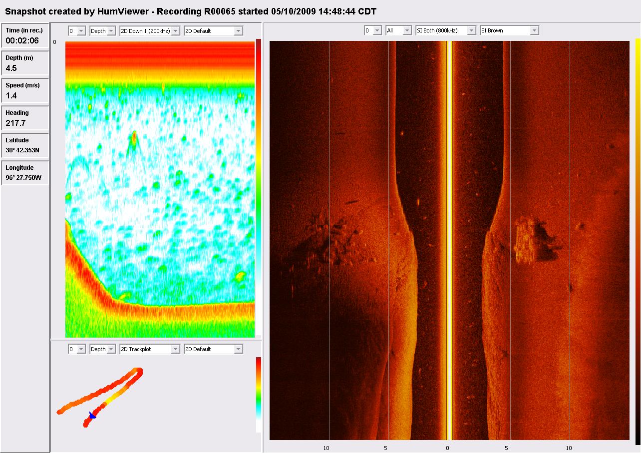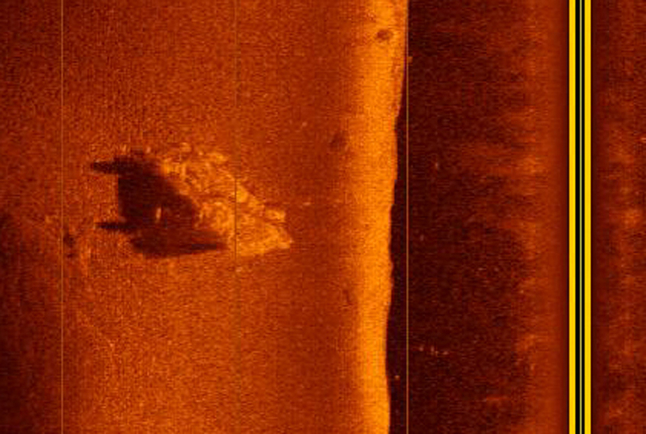 Humminbird 997c SI Side Image Sonar view of the car upside down on the bottom