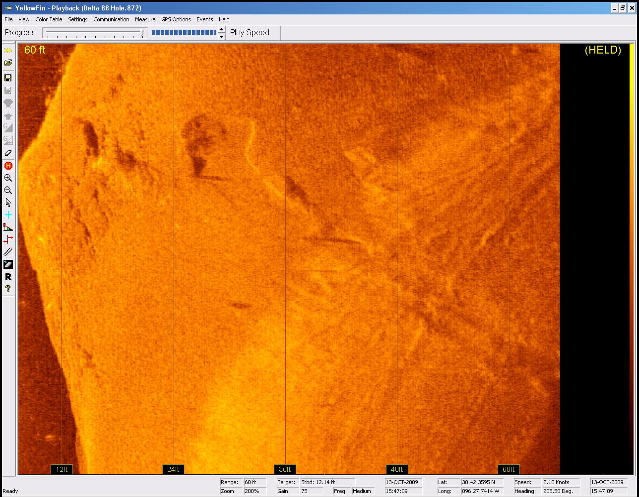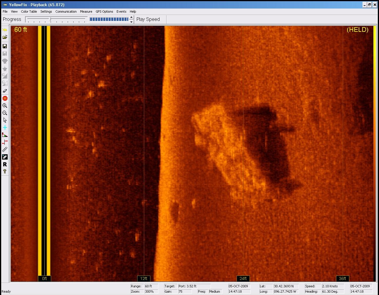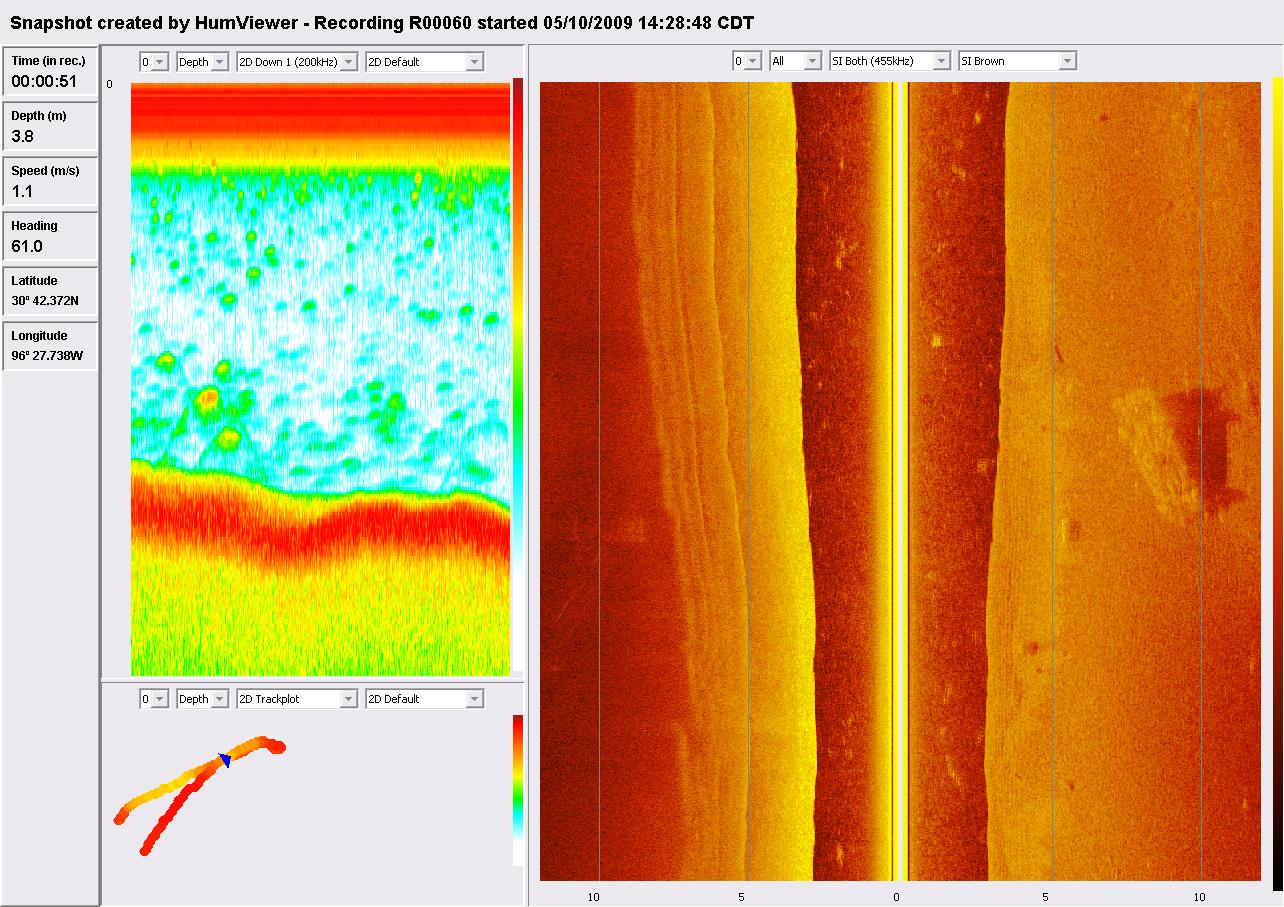 Humminbird 997c SI Side Image Sonar view of the car upside down on the bottom