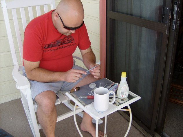 I had taken Monday off for some modeling but got aggravated instead, cable TV hookup for The Shop got destroyed, and i tried airbrushing, but just ended up splattering paint and sanding down the paintjobs. So after a 2nd pot of coffee, leftover meaty loaf ( I loves me some meatyloaf), and taking a poop I felt more human. Sucessfully getting the Cable back Online for the Shop helped too. Did a little research online and discovered that yes, I need to turn down the pressure down and yes when I do that, I need to thin the paint and rubbing alcohol does that nicely! 'Mazing what you can find in the forum archieves at Starship Modeler. Anyhoo. Airbrushed up my three TOS ship hulls using Tamiya JN Grey, its sorta a lighter color grey, with a hint of bluishness to it; just so happens that the Mirror Universe episodes of ENTERPRISE aired on Sci Fi last night, seems that my paint is pretty much spot on for the color of the Defiant. I also made up a little jig for painting TOS Nacelles, sure wish I had decals...... |