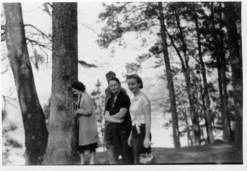 Ruby Wright, Maggie Wright and Myrtle Wright. Brice Wright is in the back.